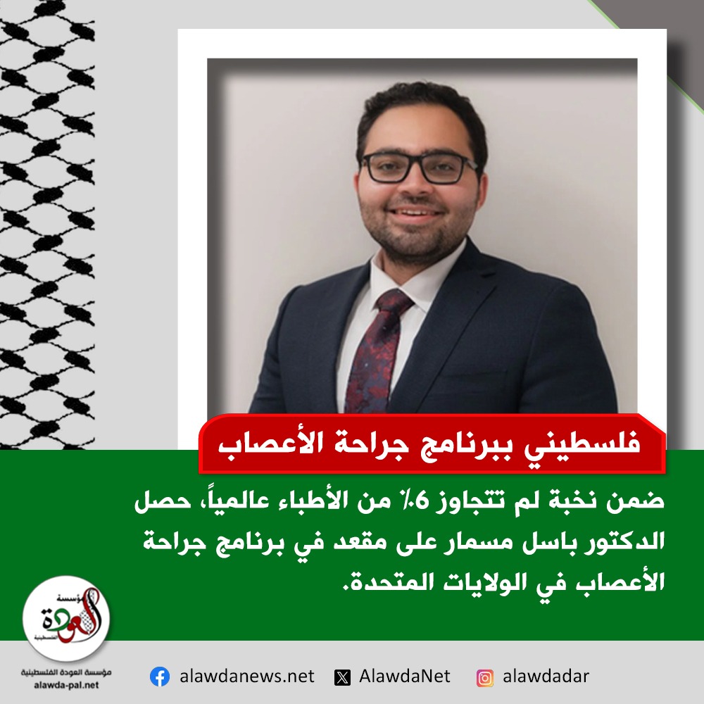 جرّاح فلسطيني يحجز مقعداً في برنامج جراحة الأعصاب بالولايات المتحدة