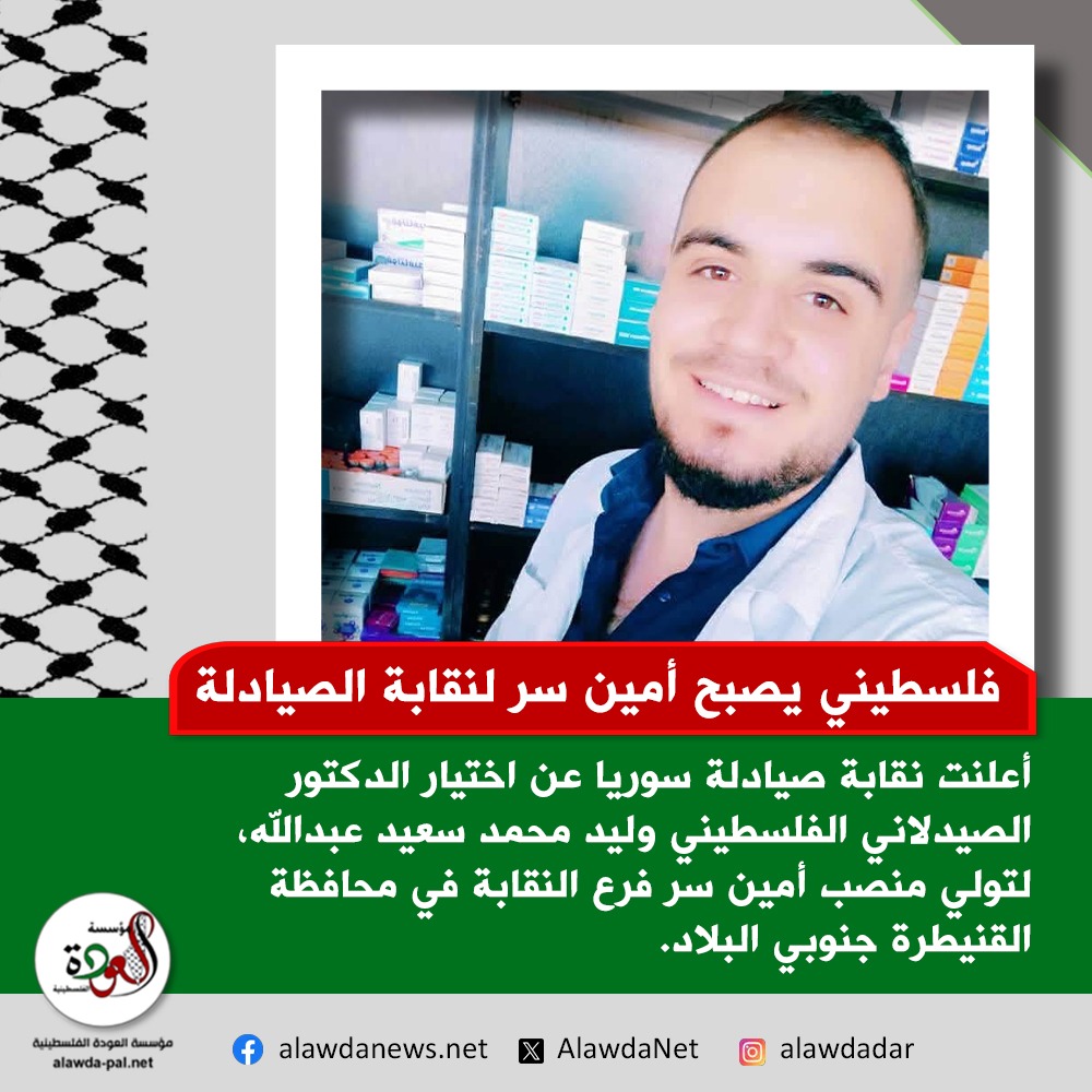 تعيين صيدلاني فلسطيني أمين سر لنقابة الصيادلة في محافظة القنيطرة السورية