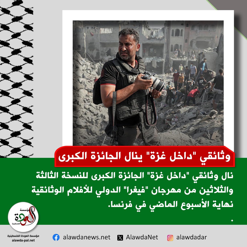 وثائقي "داخل غزة" ينال الجائزة الكبرى بمهرجان "فيغرا" في فرنسا