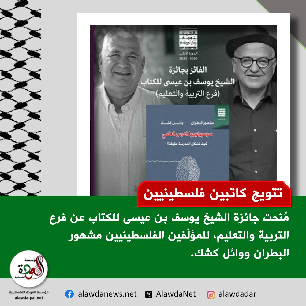 عن فرع التربية والتعليم.. تتويج كاتبين فلسطينيين بجائزة الشيخ يوسف بن عيسى للكتاب