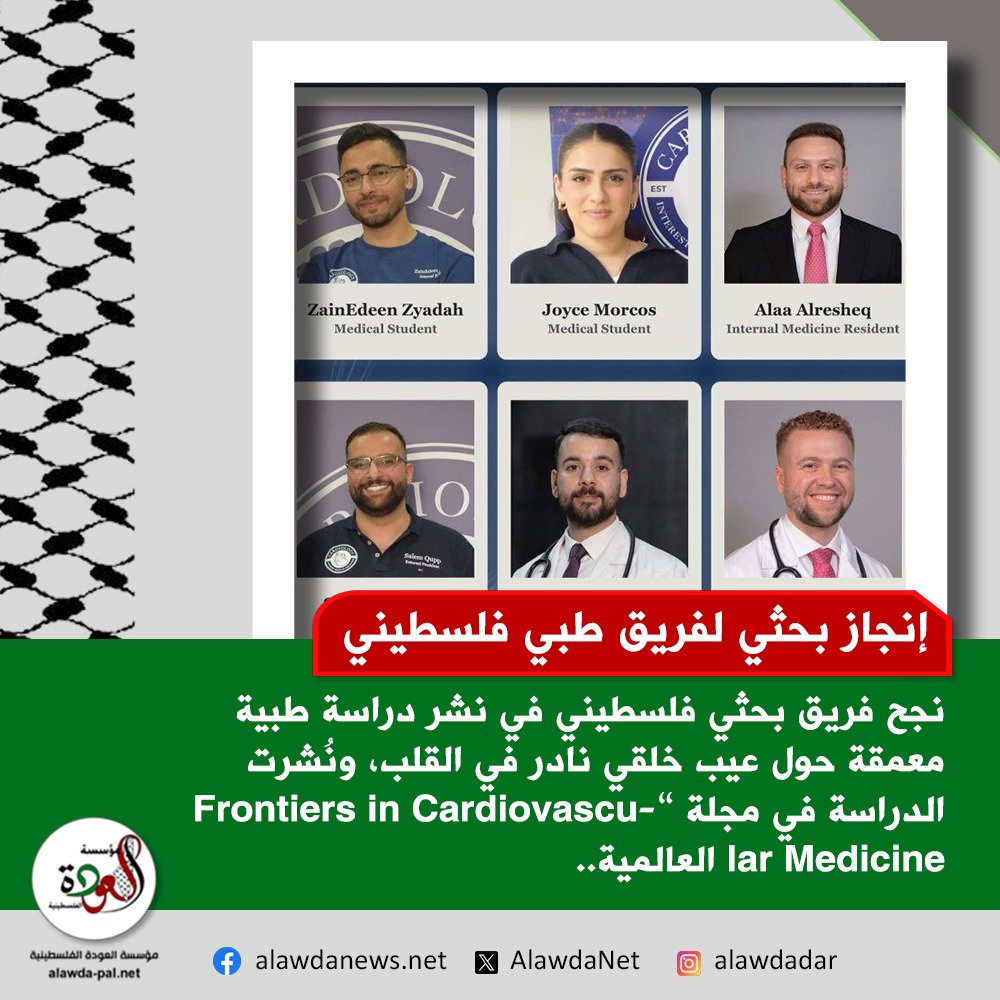 إنجاز بحثي لفريق طبي فلسطيني في طب القلب العالمي