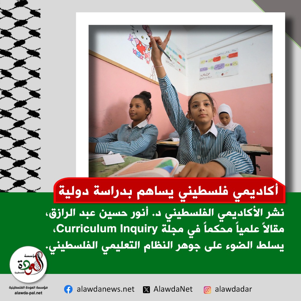 نشر الأكاديمي الفلسطيني د. أنور حسين عبد الرازق، بالتعاون مع باحثين من جامعتي "جورج ميسون" و"بورتلاند الحكومية" بالولايات المتحدة، مقالاً علمياً محكماً في مجلة Curriculum Inquiry، التي تُعد واحدة من أعرق الدوريات العالمية المختصة في المناهج والدراسات التربوية.