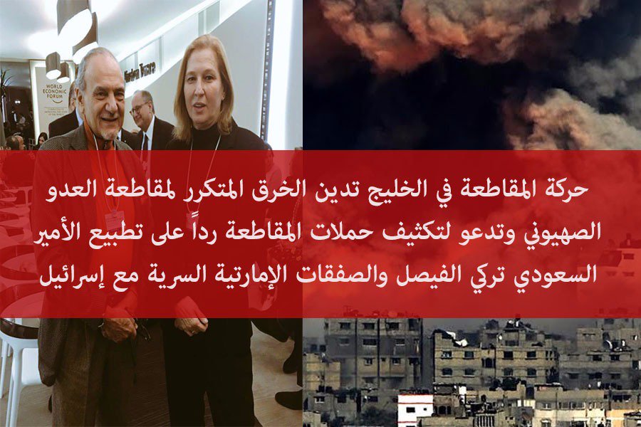 وكان الأمير السعودي قد التقى بالوزيرة الإسرائيلية السابقة تسيبي ليفني في مؤتمر دافوس في سويسرا، فقد التقى بالوزيرة ذاتها في يناير 2014، وتبعها مصافحته أمام الكاميرات لوزير الحرب الإسرائيلي السابق وسفاح غزة موشيه يعلون في ميونيخ في فبراير 2015 ومن ثم اللقاء الذي جمعه مع يعقوب عميرور مستشار الأمن القومي لرئيس وزراء دولة الاستعمار الاستيطاني والاحتلال الصهيوني بنيامين نتنياهو وغيرها من اللقاءات العلنية، فيما يبدو وكأنه مقدمات للتطبيع ومحاولة لفرضه على الشعوب».